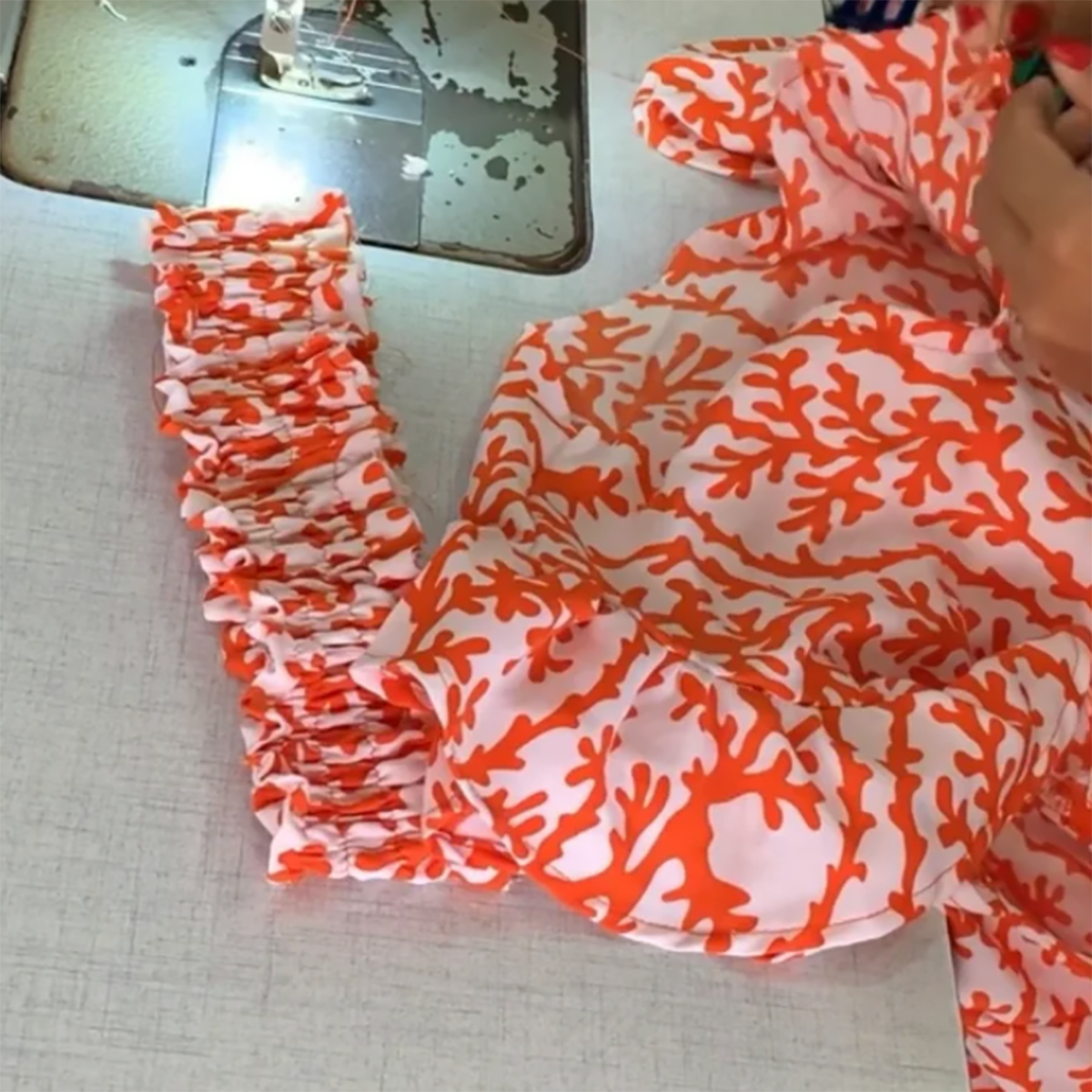 A happy team of 12 seamstresses work from a small family run factory outside Seminyak headed by the lovely Ratna. She has been in the clothing business for over 20 years and oversees the production process from pattern making to the finished article.
